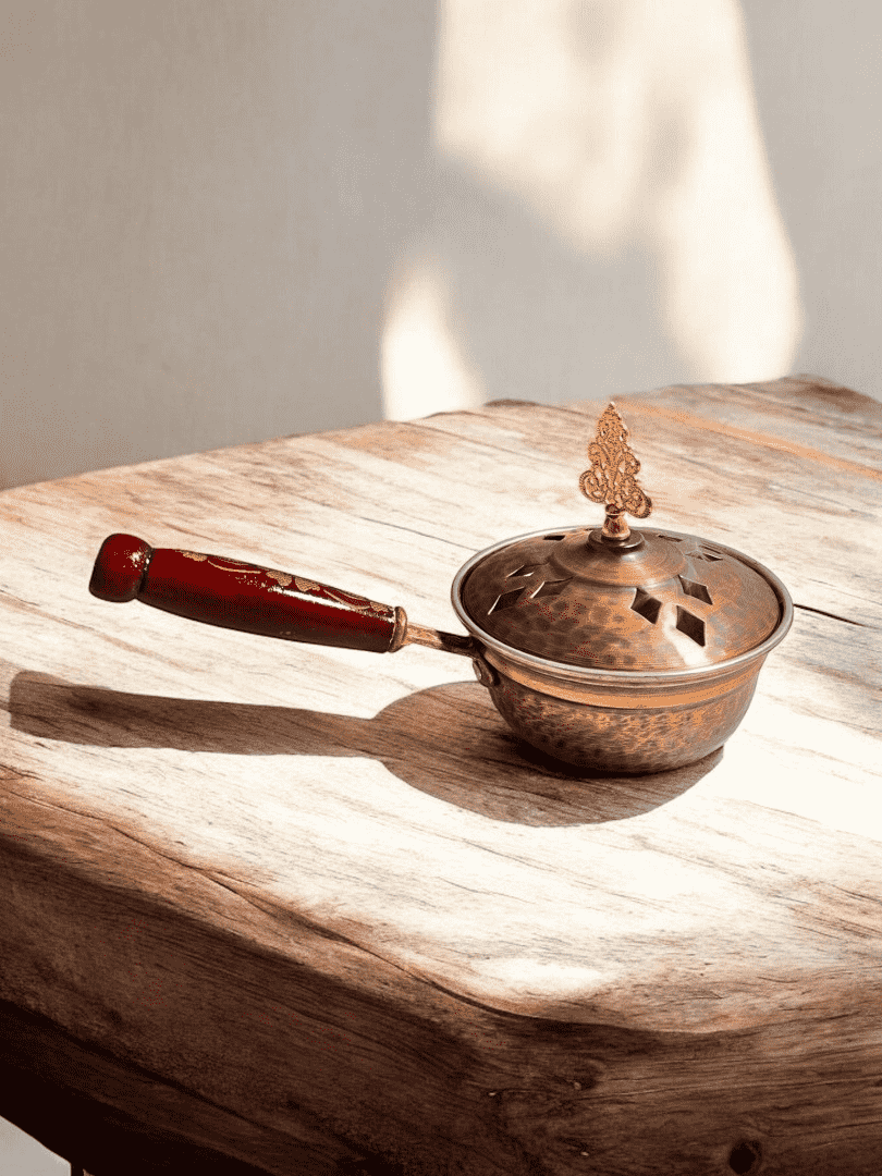 Bakırın sıcak tonları, herhangi bir dekorasyona zarif bir dokunuş katar. Evde rahatlatıcı bir atmosfer yaratırken, bakır tütsülük aynı zamanda şık bir dekoratif öğe olarak da kullanılabilir. Geleneksel veya modern ev dekorasyonlarına uyum sağlar.