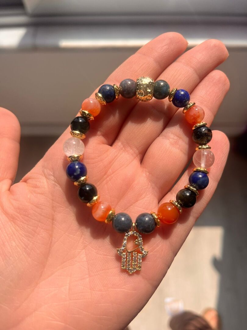 İçeriğindeki doğal taşlar – Lapis Lazuli, Akik, Obsidyen, Kyanit, Turmalin ve Kristal Kuvars – enerjisel bedeni dışarıdan gelen kem bakışlara, kıskançlığa, gizli hasetlere ve bilinçsizce yöneltilen düşük frekanslı alanlara karşı korur. Özellikle negatif titreşimleri emen, aurayı güçlendiren ve ruhsal dengeyi sağlayan taşlardan oluşturulmuştur.
