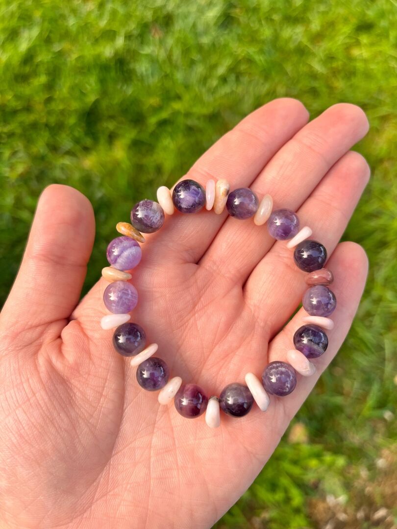 Pembe Opal & Ametist Bileklik, kalbinize huzur, zihninize berraklık ve ruhunuza şefkat getirmek için tasarlandı.