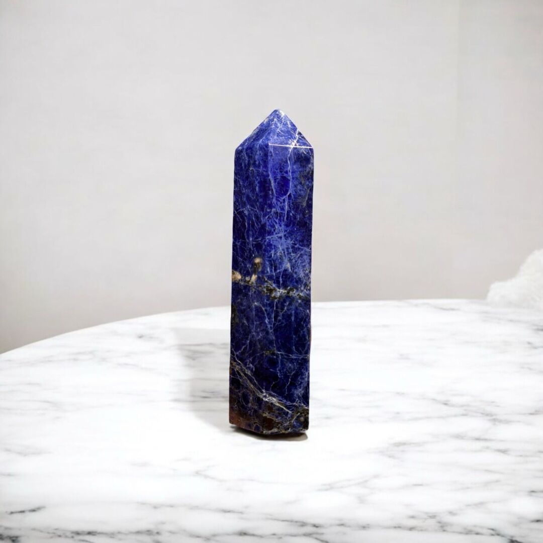 Sodalit, mavi renkte ve beyaz damarlarla desenli olan bir doğal taştır. Hem estetik hem de ruhsal faydalarıyla bilinen bu taş, özellikle tek uçlu kazık şeklinde kullanıldığında, enerjilerin yönlendirilmesi ve odaklanması için çok etkili olabilir.